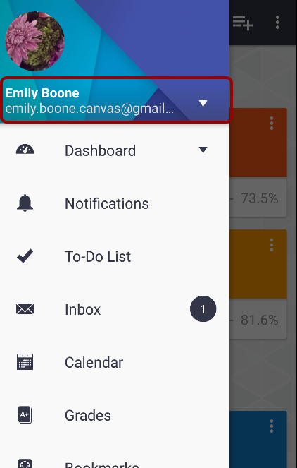Your User Menu may display other LTI tools, such as Studio and Mastery, that you can access via a mobile browser.
