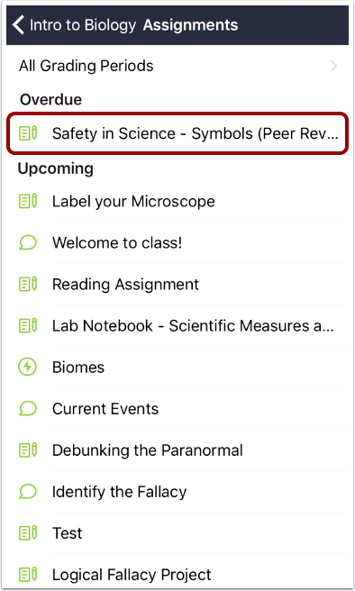Note: If grading periods are enabled in your course, you can also filter to view assignments by grading period.