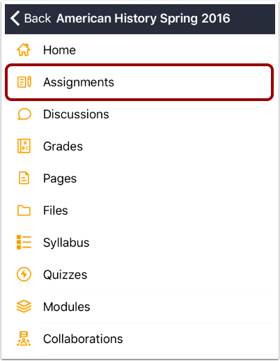 Note: You may have to swipe your screen to view the Assignments link.