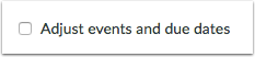 If you want to adjust the due dates associated with the course events and assignments, click the Adjust events and due dates checkbox.