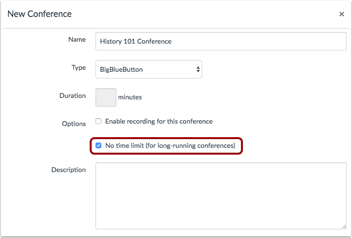 Conferences created without a time limit remain active as long as you (or another conference organizer) keeps the conference running.