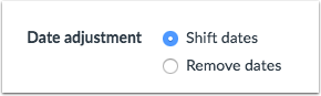 As part of a course import, you can adjust the due dates associated with course events and assignments. You can also shift due dates to a different day, or remove all associated due dates.