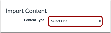 In the Content Type drop-down menu, select the content type you want to import. Complete any additional fields required for the content.