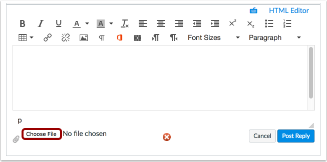 - Instructors have the option to not allow students to attach files to Discussions. If you cannot attach a file, this feature has been disabled.