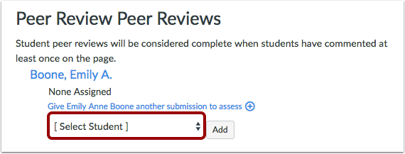 When you create a peer review assignment with manual peer reviews, you can choose which students will be assigned peer reviews.