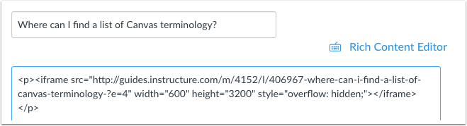 In the community, you can copy an embed code of a guide to paste in your Canvas course page.