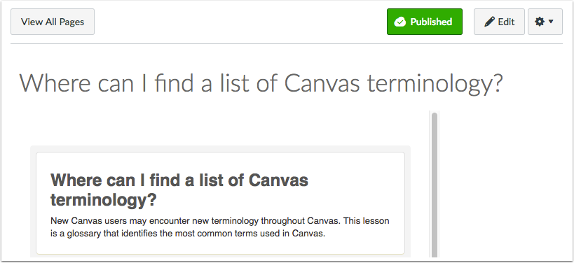 Pages is designed to open to the front page for the course, if there is a front page selected. To select a page from the Pages Index, click the View All Pages button.