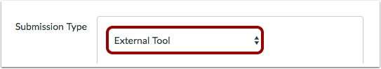 In the Submission Type drop-down menu, select the External Tool option.