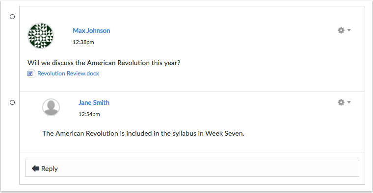 To respond to a discussion reply, click the Reply link.