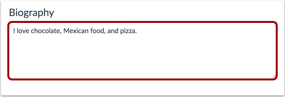 In the Biography field, add hobbies, interesting facts, and any other items about yourself.