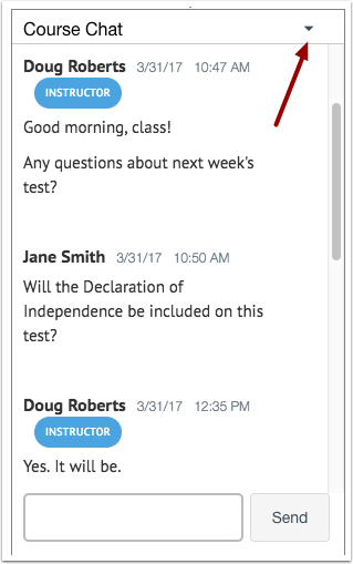 If configured for your institution, inline chat allows you to communicate with other users in a course from areas other than the Chat page.