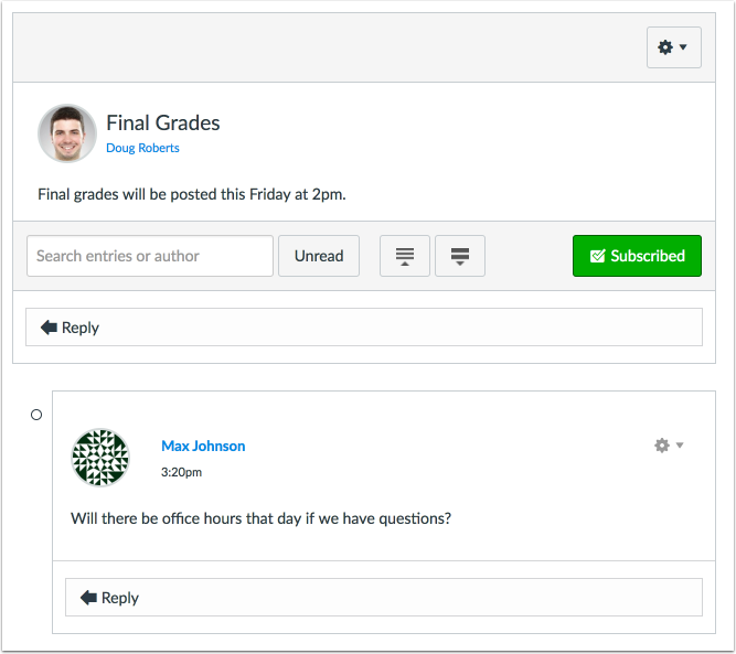 If you have a question or comment about an announcement, you can reply directly to that announcement.