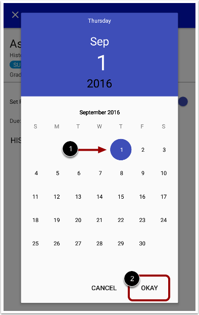 Select the date when you want to receive the reminder [1]. Tap the OK link [2].