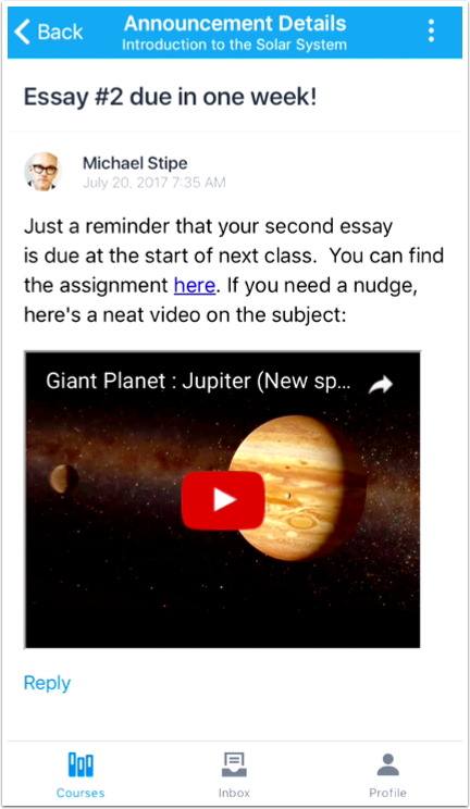 The Announcement Toolbar remains at the top of the announcement when you are viewing announcement replies.