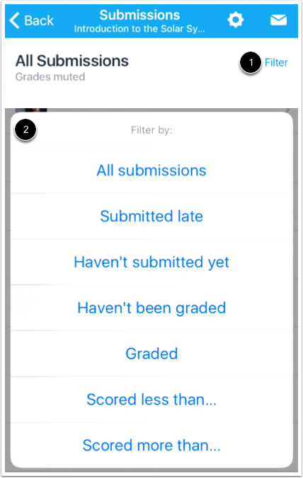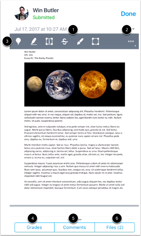 If the student resubmitted the assignment, tap the attempt number to view dates and times from previous submissions [2].