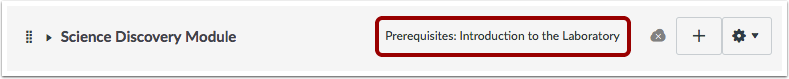 To add additional prerequisites, click the Add Prerequisite button [1]. If you want to ensure students complete modules in order, you should add prerequisites for all modules that come before this module.