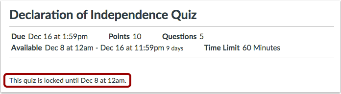 - If the quiz says Not Available Until [date], the quiz is locked until until the specified date.