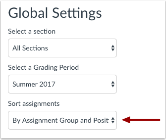 Assignments will be displayed according to your sorting preference in the Global Settings drop-down menu.