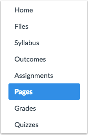 In Course Navigation, click the Pages link.