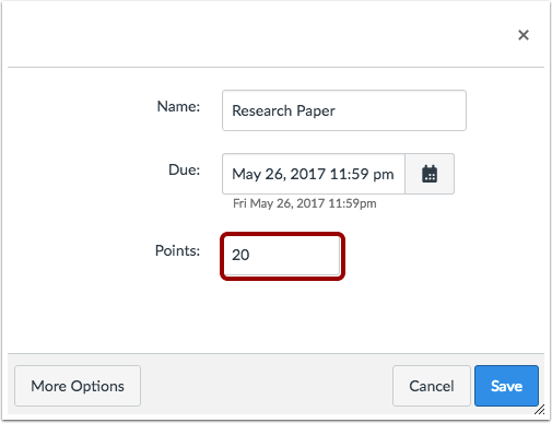 Edit the points available for the assignment by typing in the points field.