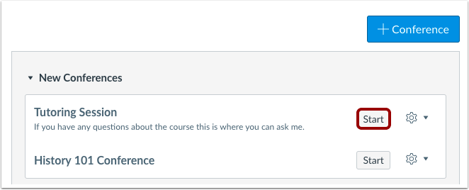 You can start conferences that you have created for your course.