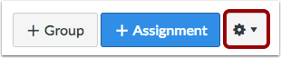 Click the Assignments Options icon [1] and select the Assignment Groups Weights option [2].