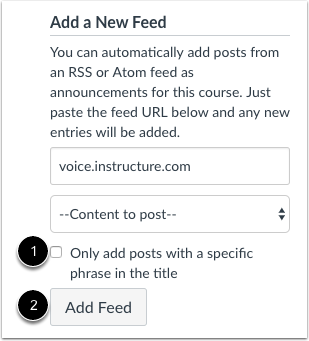 Note: Adding an RSS feed creates an announcement for every new item added to that feed. Users who have chosen to be notified of new announcements in their Canvas notification settings may see a substantial increase in the amount of notifications they receive.