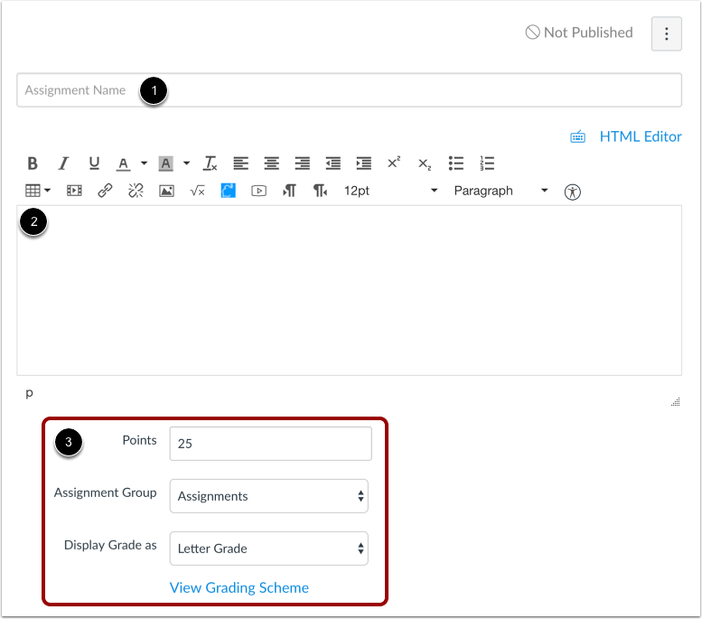 - Differentiation tags are not supported for Group Assignments and will not appear as an option when creating them.