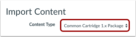 Note: If you're working with Canvas Commons, you can also import IMSCC files by selecting Common Cartridge 1.x Package.
