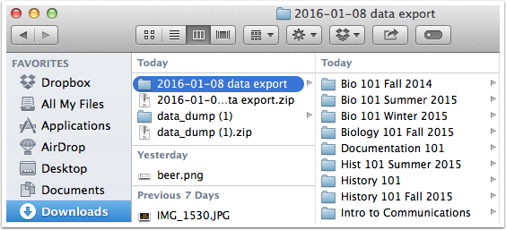When the export has finished generating, submissions are downloaded as a ZIP file.