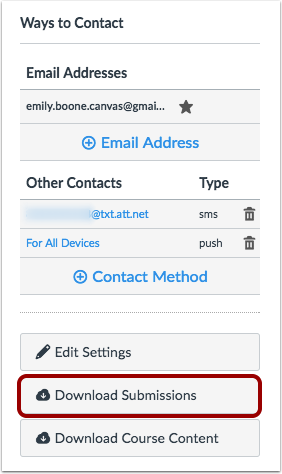 As a student, you can download all your assignment submissions in Canvas. Submissions are for both current and concluded courses and only includes any files that were submitted to fulfill an assignment; they do not include any submissions modified by instructors, such as annotated submissions.