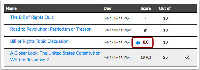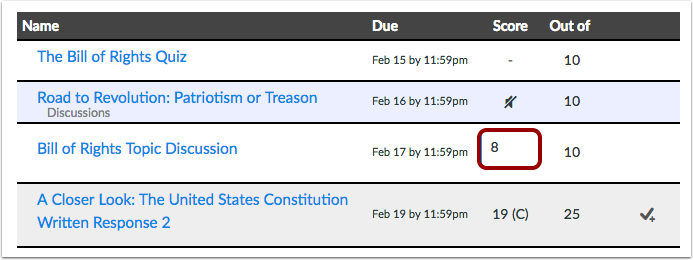 - If enabled by your institution, you may only have the ability to view qualitative data, such as letter grades and grading comments.