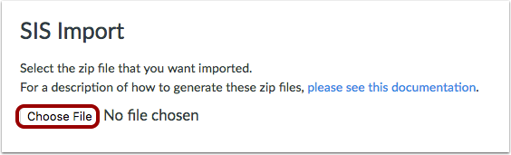 Click the Choose a file to import button and locate the SIS import file from your computer.