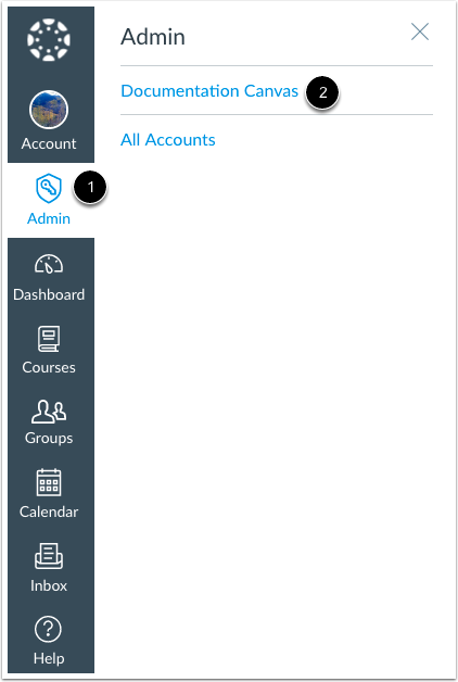 In Global Navigation, click the Admin link [1], and then click the name of the account [2].