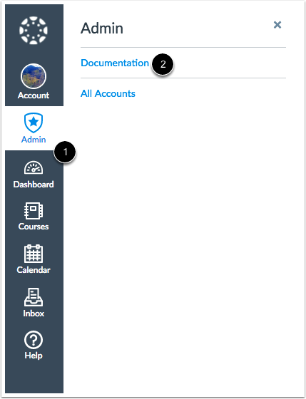 In Global Navigation, click the Admin link [1], then click the name of the account [2].