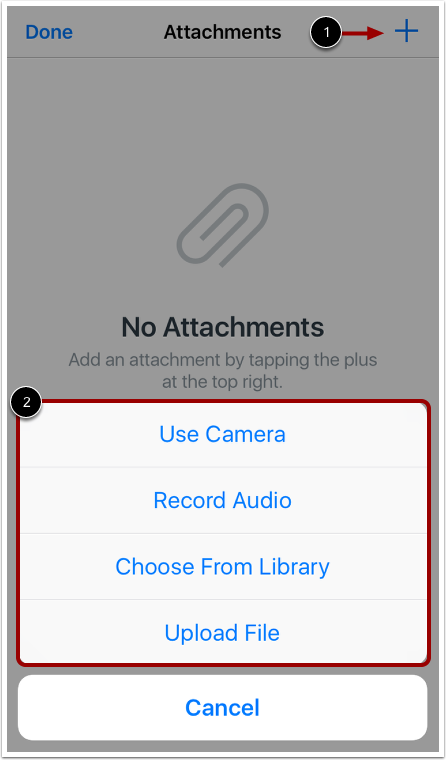 View your attachment [1]. To remove your attachment, tap the Remove icon [2].