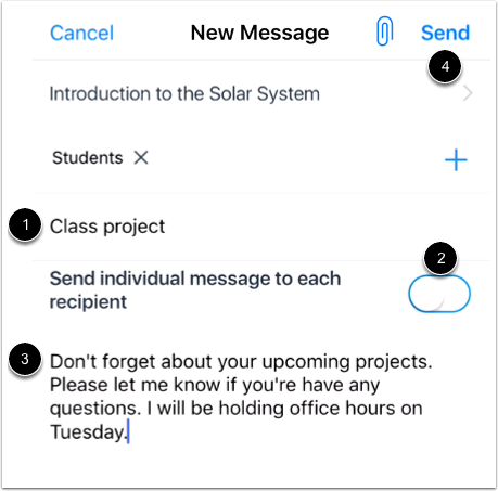 If you want to send individual messages to each recipient, tap the message toggle [2].